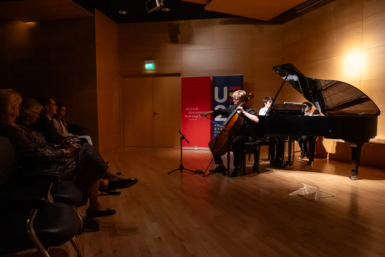 In diesem Jahr war es ein ganz besonderes Erlebnis: die Botschaft von Spanien in Deutschland öffnete ihre Türen und war Gastgeber eines Konzertes mit den LMN Stipendiaten Philipp Schupelius (geb. 2003, Violoncello, u.a. 1. Preisträger des deutschen Musikwettbewerb 2023) und Simon Haje (geb. 2005, Klavier, u.a. 1. Preisträger Schumann-Wettbewerb und Young Steinway Artist 2022).Das Programm hatte – natürlich – spanischen Bezug, vor allem aber war es eine Hommage an den berühmten spanischen Cellisten Pablo Casals (1876-1973), Zeit seines Lebens nicht nur ein außergewöhnlicher Musiker, sondern auch politisch aktiver Pazifist. Sein Zitat ‚Als erstes bin ich Mensch, dann bin ich Musiker’ stand über allen Stücken, die an diesem Abend gespielt wurden.
